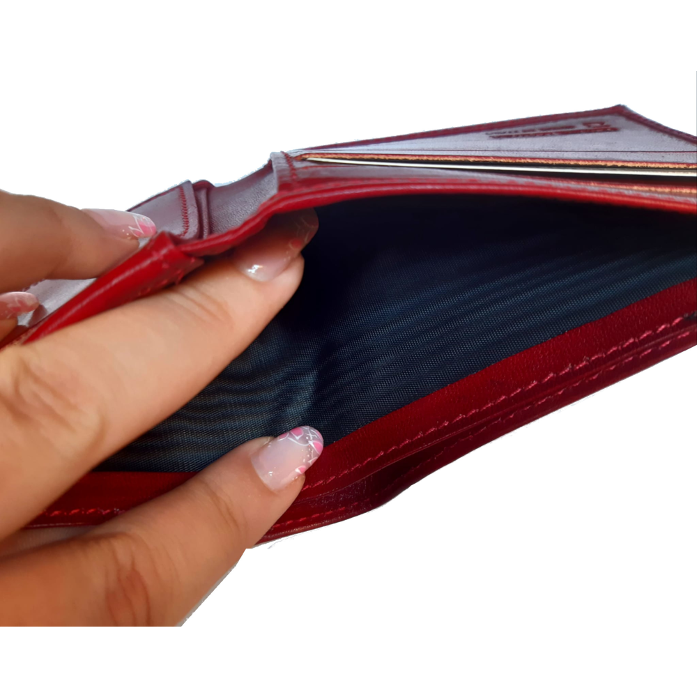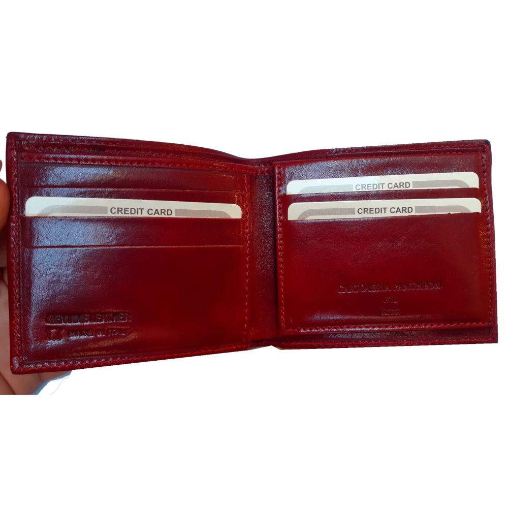 - • Bourbon wallet with 8 slots, one bill space and double space for banknotes.