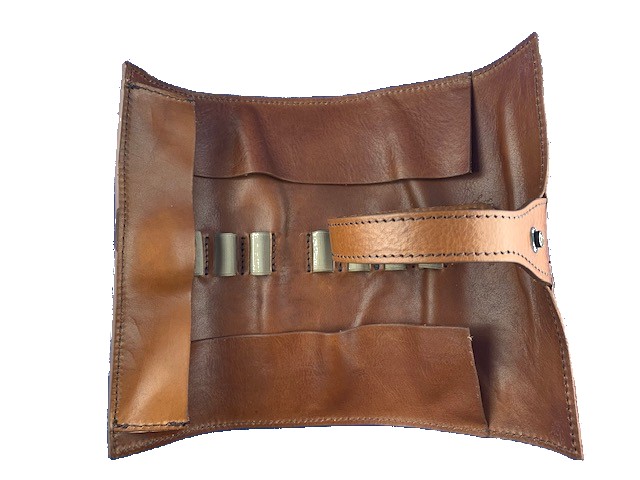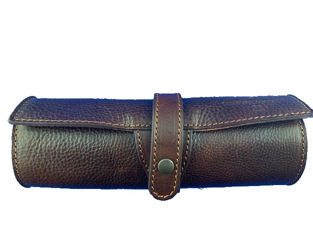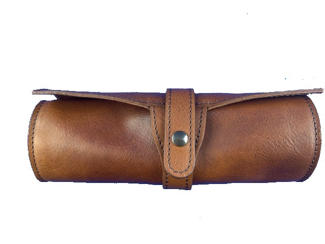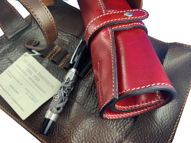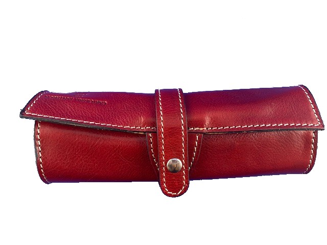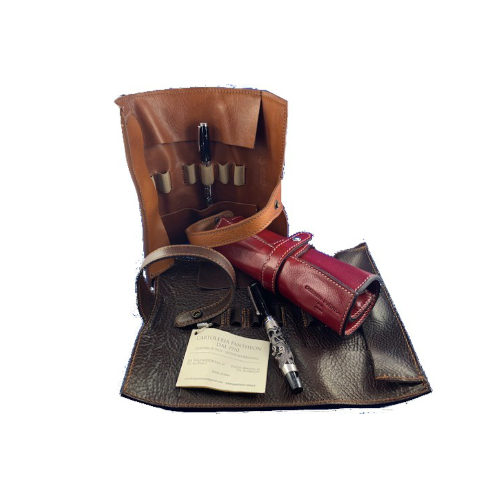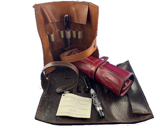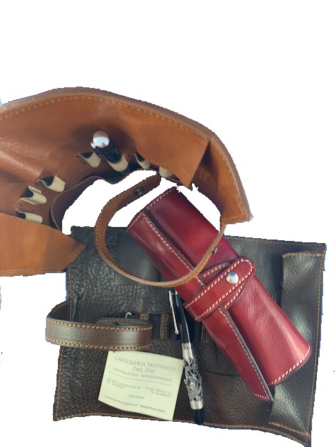 Leather pen holder with snap button, closure and 8 compartments, handrcrafted in Italy, chiusura a bottone a pressione a 8 scomparti realizzato aritigianalmente in Italia