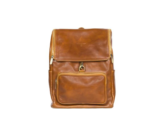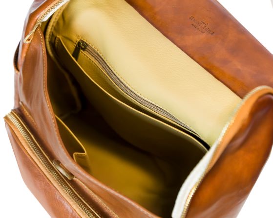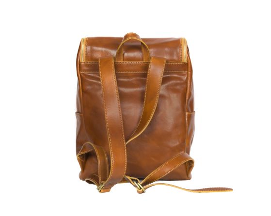 Leather backpack, semi-rigid structure, handcrafted in Italy;