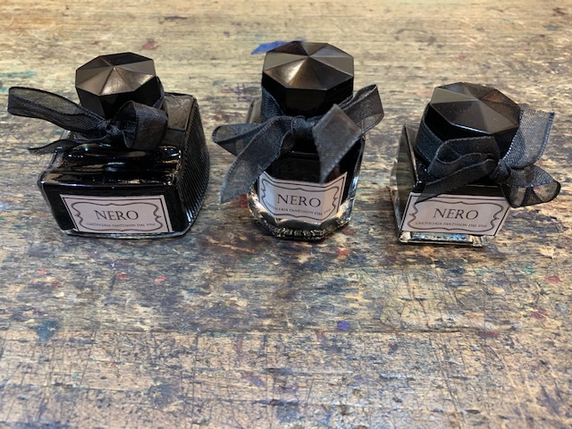 Available in the shop black, dark blue, turquoise, sepia inks, in bottles of 30 ml (square bottle), 40 ml. (octagonal bottle), 70 ml. ( rectangular bottle with pen holder).