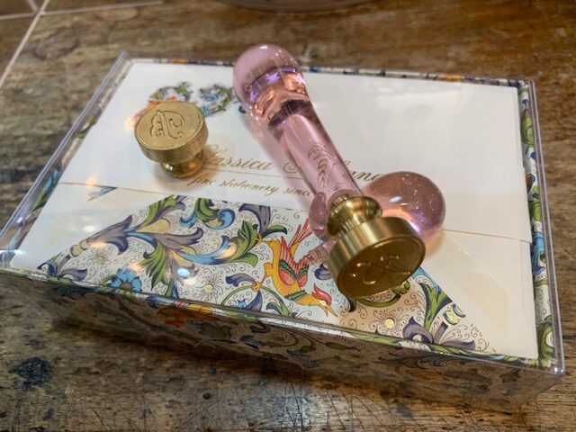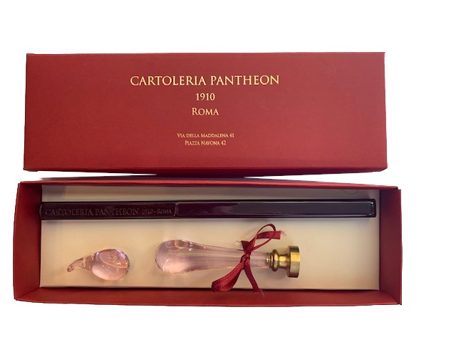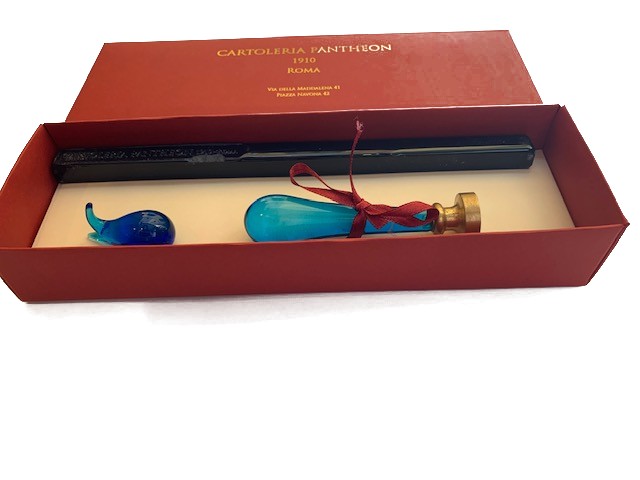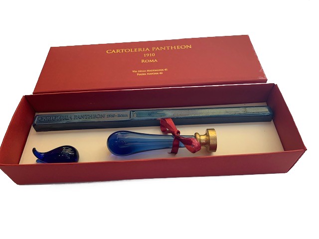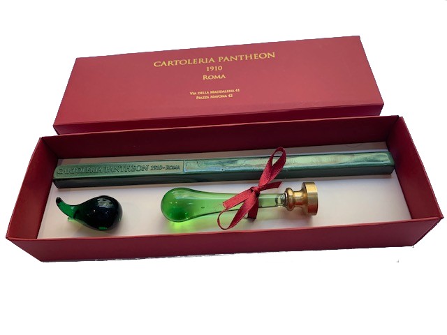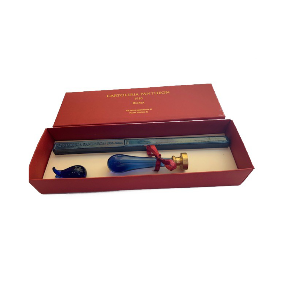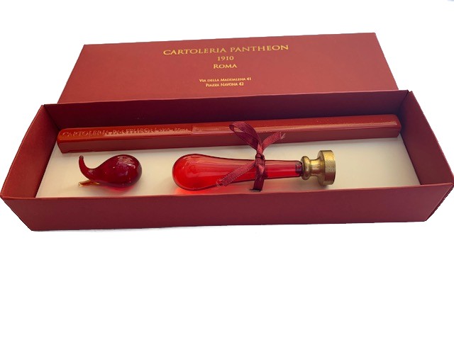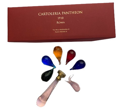 Glass Set composed by box with seal with glass handle cm. 8 + glass seal holder + wax in your favourite color , Tot. € 45,50.