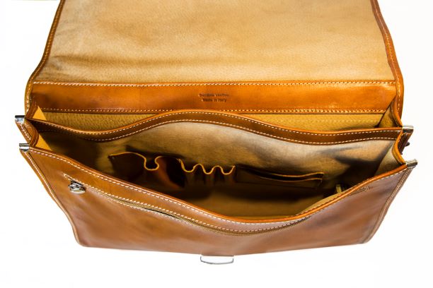 Cartella in pelle con struttura morbida, realizzata a mano in Italia;