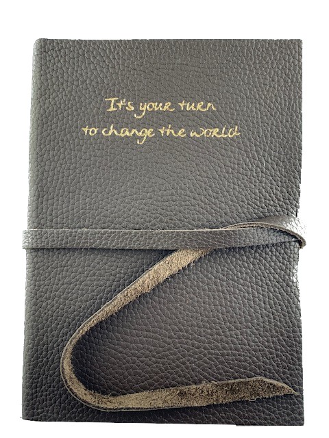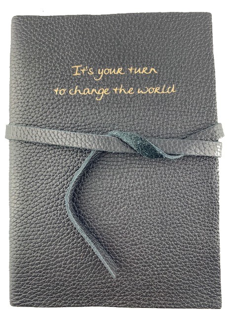 Diario in pelle chiusura con laccio, copertina flessibile, realizzato a mano in Italia;