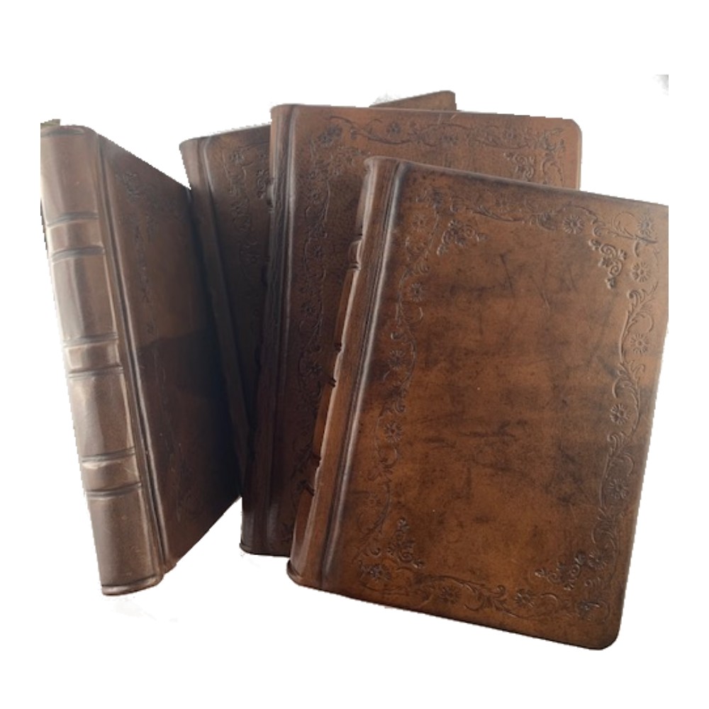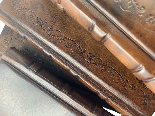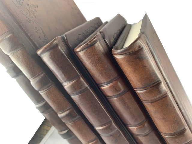 classiche tecniche di legatoria italiana; - Pelle di vitello pieno fiore, colorata a mano;